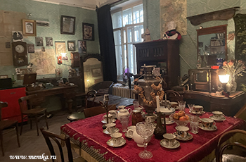 Следующая коммунальная квартира любопытна еще и тем, что в ней жил Сергей Довлатов. Вы попадете в комнату площадью под сорок квадратных метров, где в свое время гостили Иосиф Бродский и Евгений Рейн. Вас ждут истории из жизни Довлатова, байки о пятнах портвейна на полу и о том, каким путем писатель ходил в школу. Увидите букинистическую редкость - первую книгу писателя, изданную в Америке в 1977 году, подпольный самиздат Ахматовой и эмигрантские журналы с ранними публикациями Довлатова и Бродского. Также обнаружите надпись забавного бытового содержания, оставленную, вероятно, мамой Сергея Довлатова. Фанаты оценят редкие фотографии, многие из которых принадлежали писателю.