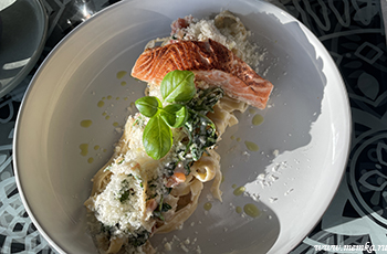Персонал очень вежливый, предупредительный. Кухня работает по меню, были готовые завтраки/обеды и ужины, но мы почти всегда брали по меню. Делаешь заказ к определенному времени, приходишь, все готово. Я оплачивала вечером сразу за весь день, чтобы не запутаться очень удобно. В среднем, прием пищи обходился нам в 3000 руб. на двоих.