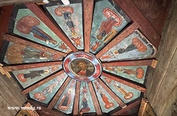 Рядом - Покровская церковь (1764 г.) и шатровая колокольня, вместе они образуют величественный архитектурный ансамбль, заметный с воды за километры. Покровская церковь открыта для осмотра, внутри - более скромный, но аутентичный интерьер, иконы и деревянная резьба. А поднявшись на смотровую площадку колокольни, можно полюбоваться панорамой острова и озера.